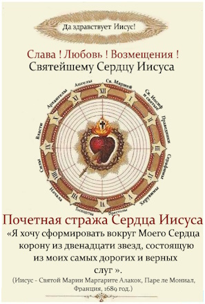 В Паре-ле-Мониаль Господь Иисус сказал Святой Маргарите Марие о своем желании, чтобы поклонение и почитание его Святейшего Сердца было публичным, а не только частным : «Мне доставляет особое удовольствие видеть, как мою любовь чествуют в образе Сердца из плоти. Я желаю, чтобы его образ был выставлен на всеобщее обозрение, дабы тронуть бесчувственные сердца людей». И Господь добавил: «Где бы ни был выставлен этот образ, чтобы его единолично почитали, он привлечет всевозможные благословения». «Я хочу сформировать вокруг своего Сердца корону из двенадцати звезд, состоящую из моих самых любимых и верных слуг. Я испытываю жгучую жажду быть любимым и почитаемым в Таинстве Моей любви, и почти никого не нахожу, кто бы ответил на это мое желание». (Сердце Иисуса в 1689 в Paray le Monial, к Святой Маргарите Марие Алакок, которую Он Сам назвал ученицей Своей любви). Наш Господь Иисус призывает к публичному поклонению в вере, возмещении ущерба и любви. Когда был основано Почетная Стража, она приняла в качестве своего штандарта часовой квадрант с изображением Святейшего Сердца Иисуса в центре.