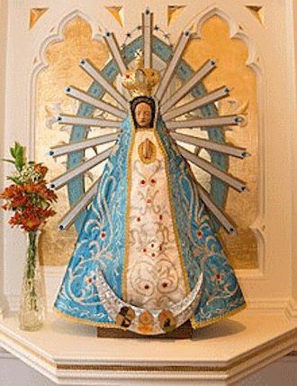 В этом мистическом и вечном приношении крови Искупителя, вытекающей из Его Божественного Сердца на Кресте, стражи чести объединяются каждый день на «первой торжественной Мессе», которую совершил Иисус, вечный Понтифик, во славу Своего Отца и ради спасения мира, при содействии Девы Марии, соработницы в деле искупления. Именно поэтому Пресвятая Дева Мария, апостол Иоанн и Мария Магдалина стояли по обе стороны жертвенного алтаря на Голгофе, и часто фигурируют в убранстве наших церквей, рядом с главным алтарем
